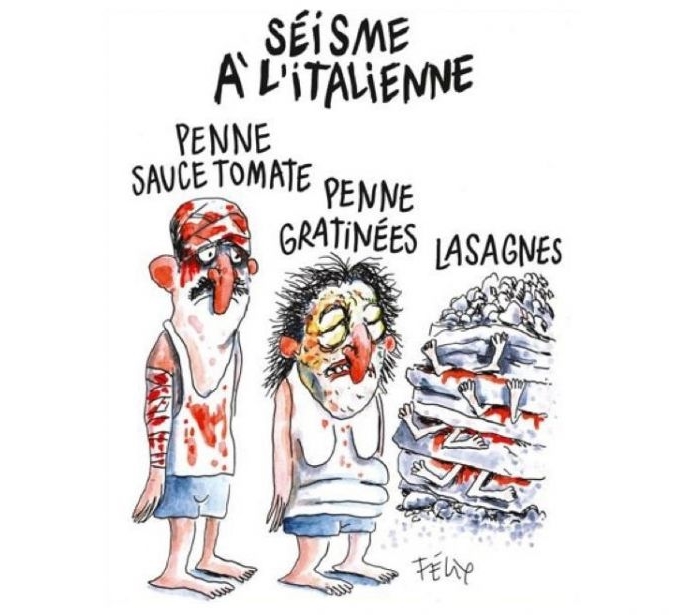 Le omologazioni comportamentali del Web – mi riferisco, ovviamente, al “Mondo dei SNS” – non finiranno mai di stupirmi. L’asservimento alla condivisione ed alla stereotipizzazione sono le uniche vere fondamenta della Rete. O, ad ogni modo, sono quelle sulle quali continuiamo ad affidarci erroneamente. Un paio di anni fa, “l’agorà virtuale” era letteralmente spaccata in due fazioni: da un lato, gli apologeti del Je suis Charlie e, dall’altro lato, i giustificazionisti del “ve la siete cercata!”. Oggi, a seguito delle recenti vignette pubblicate dalla redazione giornalistica Charlie Hebdo in riferimento al terremoto che ha colpito il Centro Italia, quella situazione dimostra di essere ancora la stessa di allora. Non è assolutamente cambiata. È sempre la solita impasse comunicativa: c’è chi continua ad ergersi a difensore e paladino della libertà di espressione e di opinione – credendoci poi chissà quanto – e c’è chi continua a denigrare lo sprezzo e la violenza verbale e visiva di quanto pubblicato dal sopracitato giornale. Si sta assistendo ad una diatriba tra chi afferma che la satira, in quanto tale, non debba essere mai soggetta a giudizi di natura morale e/o etica e chi, al contrario, va invece sostenendo che la satira non possa mai offendere liberamente e/o deliberatamente. Io, personalmente, sviluppo la mia riflessione partendo da una mia personale e modesta opinione; si sta discutendo sul nulla, dato che, invece, si dovrebbe ragionare – il condizionale è usato per motivi reverenziali nei riguardi della vostra opinione, formulatasi in merito – in riferimento ad una definita premessa di fondo per analizzare con lucidità quanto accaduto: quella di Charlie Hebdo non è satira – raramente lo è stata -, ma solo un estremo e mero infotainment. Ma procediamo con ordine.