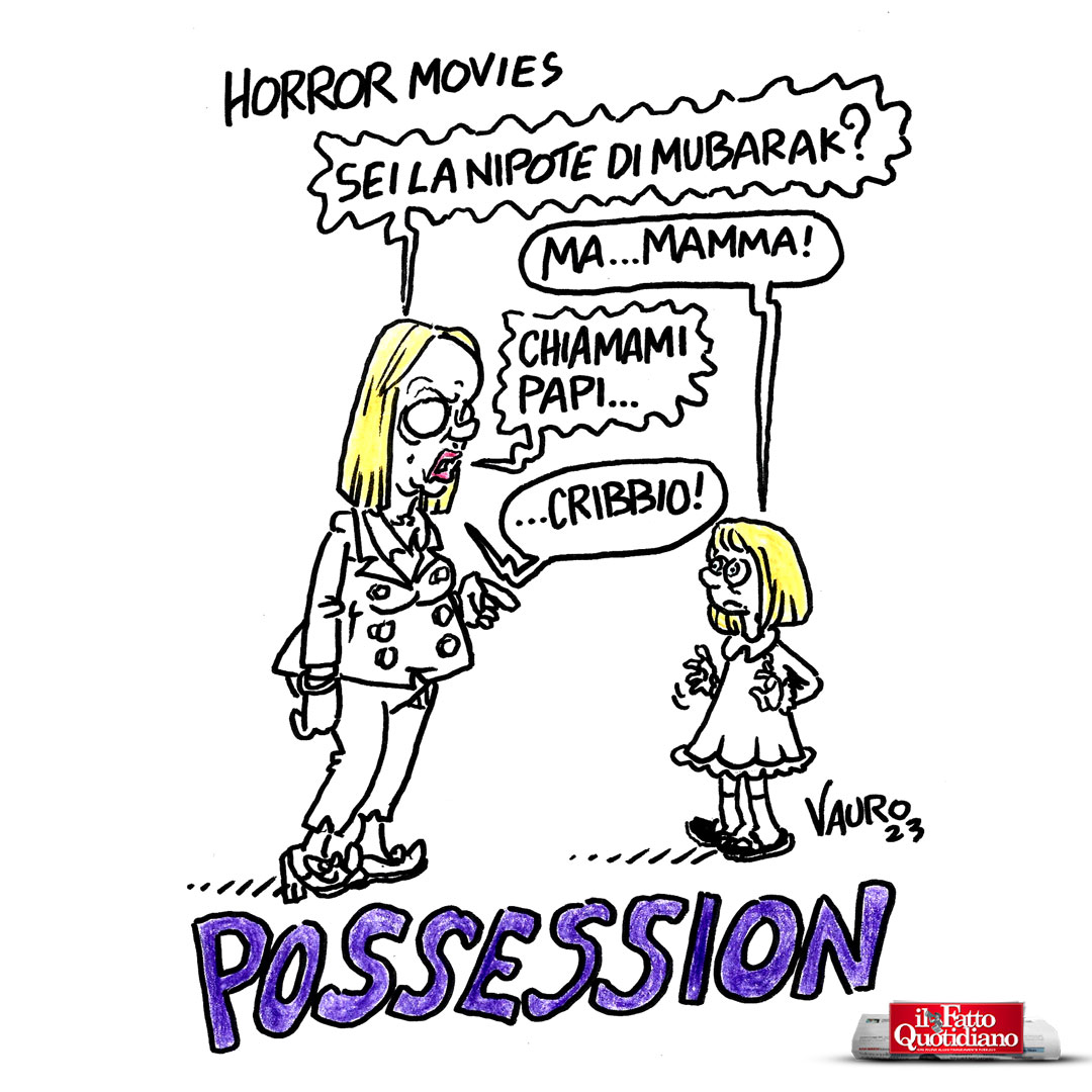 La possession così chiaramente esplicata, indica un ben preciso e, altrettanto, ben noto “lascito berlusconiano” – di cui ritengo non sia necessario fare alcun tipo di approfondimento, dato che trattasi di cronaca italiana degli ultimi vent’anni -. Nella raffigurazione, Giorgia Meloni si tramuta nel papì pappone… il tutto avviene sulla scia degli insegnamenti del proprio “mentore perduto” – a detta di Vauro -. Anzi. Probabilmente andiamo assistendo, invero, ad una vera e propria reincarnazione, ove lo spirito del decaduto Cavaliere trova dimora all’interno del corpo della sua fedele ancella. In ciò consiste il contenuto satirico della pubblicazione di Vauro. Si tratta di satira? Sì. Senza ombra di dubbio. È una chiara testimonianza di satira politica. Satira politica che investe scenari – per l’appunto – politici di un, oramai scomparso, avversario – per l’appunto – politico. Stop. È fuori luogo? È pungente? È cattiva? Probabilmente sì ma anche questo fa parte della satira politica, altrimenti nel ‘700, al posto dei pamphlets e/o delle opere clandestine, i filosofi avrebbero pubblicato ricette di cucina e Pasquino, a Roma, avrebbe avviato un’attività di import/export . La domanda semmai è un’altra: “È moralmente accettabile? E, qualora non lo fosse, possiamo continuare a considerarla satira?”.